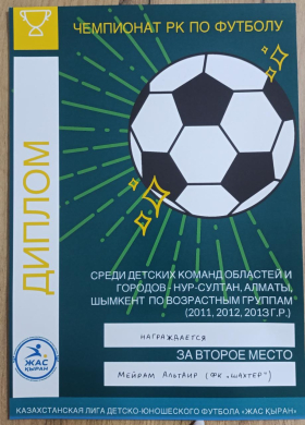 Тараз қаласындағы «Жасөспірімдер мен балалар» арасындағы «Жас қыран» футбол жарысынан 2-орын алып қайтқан «Шахтер» командасының мықты қорғаушысы 3 «Ә»…