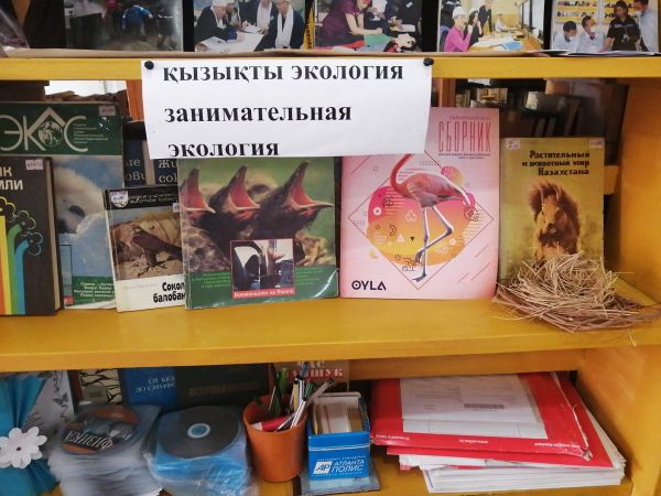 19 апреля 2022 года библиотека ОШ им.Г.Мустафина оформила книжную выставку «Қызықты экология - Занимательная экология». Мы живём на одной планете и должны её беречь. На книжной выс…