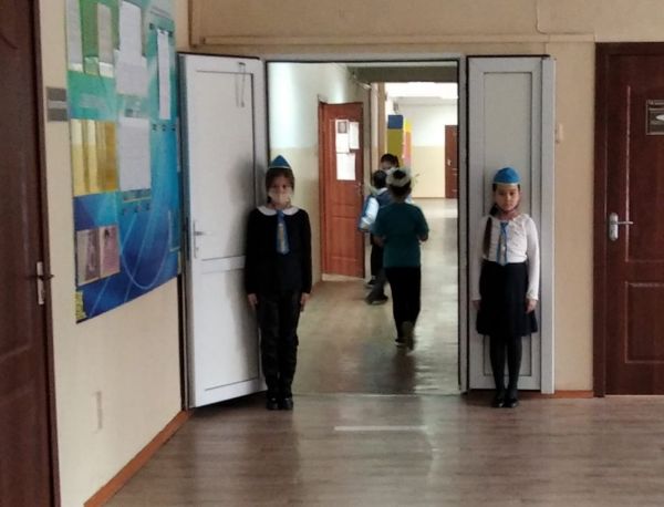 В школе дежурят малыши. 2 "Е" класс. МОЛОДЦЫ.
