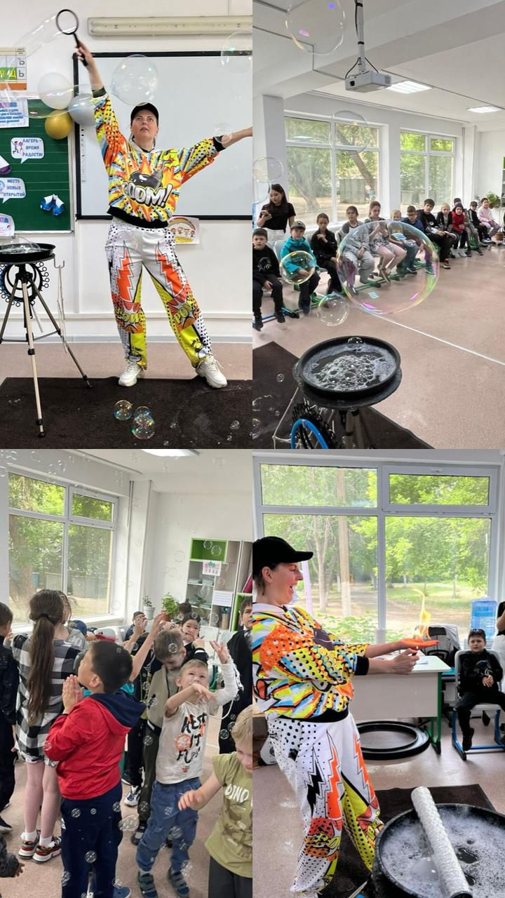 Сегодня группа Волчата побывали на шоу мыльных пузырей ,детям очень понравилось , им показали огненный шар на руках ,мыльную гусеницу было весело они отлично провели время