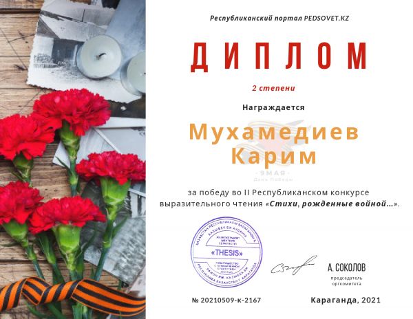 ІІ Республикалық мәнерлеп оқу сайысында 5Б сынып оқушысы Баландин Александр жүлделі II орынға ие болды. Сынып жетекшісі Адреисова Г.Т. Құттықтаймыз!