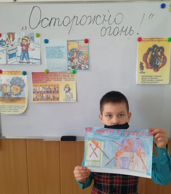 В преддверии Всемирного Дня Гражданской обороны , согласно плану проведения информационно-пропагандистских мероприятий, среди учащихся 1-2 классов был проведён конкурс рисунков "Осторожно огонь…