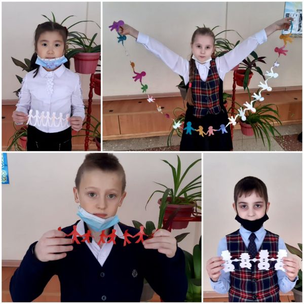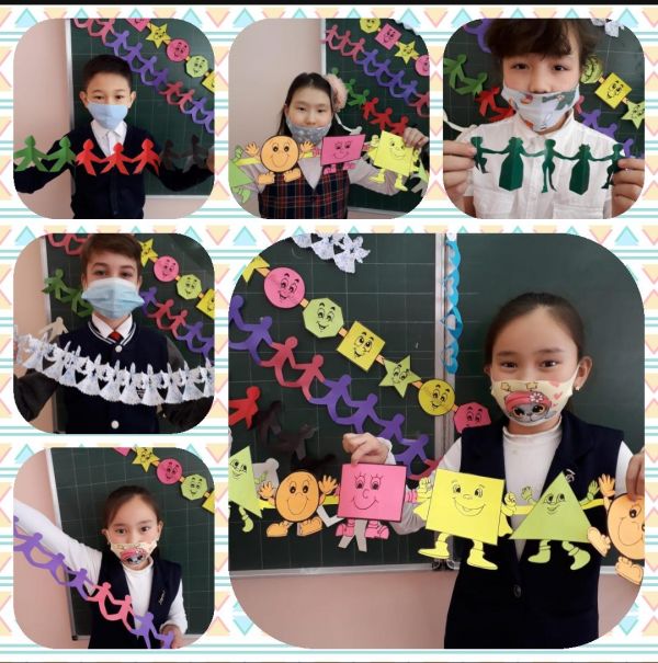 В рамках недели начальной школы "Ужасно интересно всё то, что неизвестно " ребята 4 "Г" класса приняли участие в конкурсе "Гирлянда геометрических человечков".