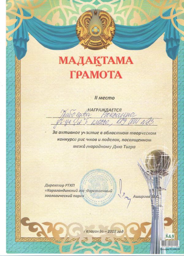 "Жолбарыс күні" мерекесі қарсаңында Қарағанды мемлекеттік зоологиялық паркі ұйымдастырған суреттер мен қол өнер байқауына 2 "Б" сынып оқушылары байқауға белсене…
