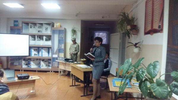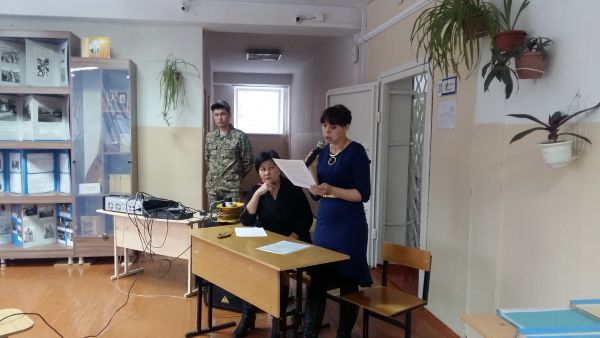 04 сәуір 2018ж. кітапхана меңгерушісі Е.В.Игнатьева 10-11 сынып оқушылары арасында Ғ.Мұстафиннің «Қарағанды» романы бойынша "Сіздерге туған өлкені есте сақта…