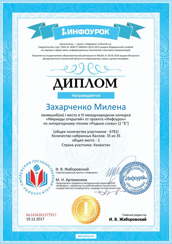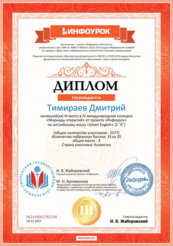 Дәстүрлі интернет олимпиадасының 2 Б сынып оқушысы Гончаров Данилдің Жеңісімен құттықтаймыз және 2 Б сынып оқушысы Махмудова Аринаныда қатысқаны үшін алғысымызды білдіреміз.