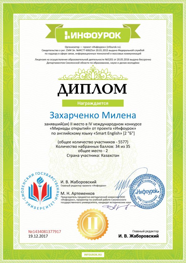 2 Б сынып оқушылары "Инновациялық білім" Зияткерлік орталығының жүргізілуімен әртүрлі олимпиадаларға қатысуларын жалғастыруда. Гавриков Алексейді, Кузьмичева Кристинаны және Хамитжан…