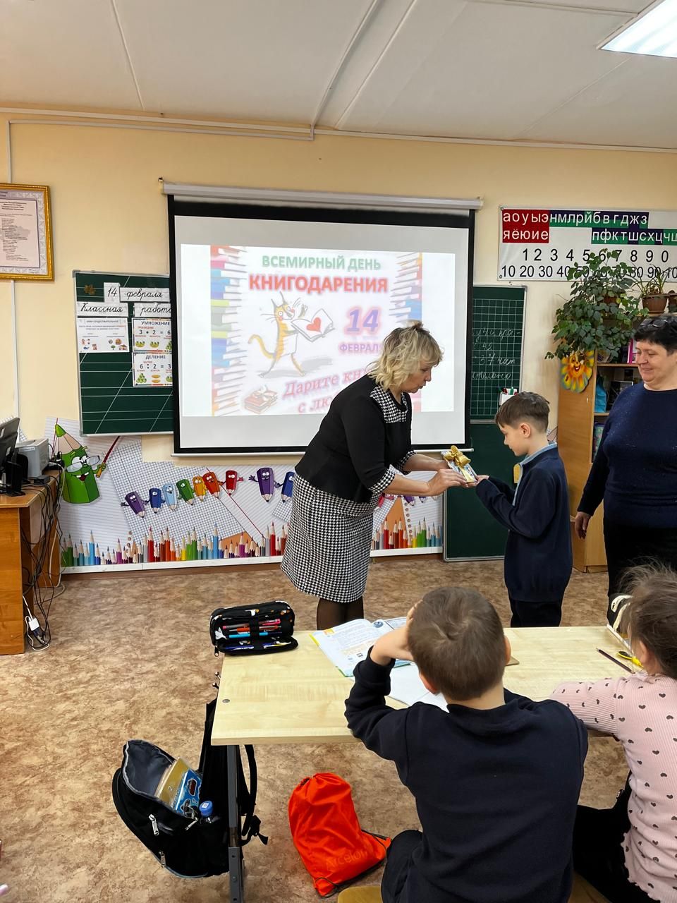 В День книгодарения сотрудники библиотеки-филиала № 11 по работе с детьми приготовили для учащихся 2Б класса занимательную викторину и подарили книгу самому любознательному читателю - Шмидт Эдуарду.
