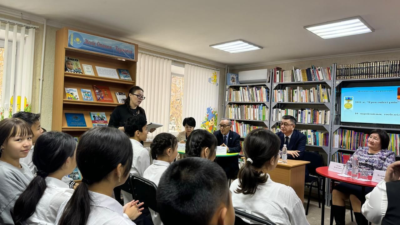 20 ноября 2024 года согласно проекту «Читающая школа» и плану работы , библиотека КГУ ОШ им.Г.Мустафина организовала посещение учащимися встречи-диалога «Человек высоко…