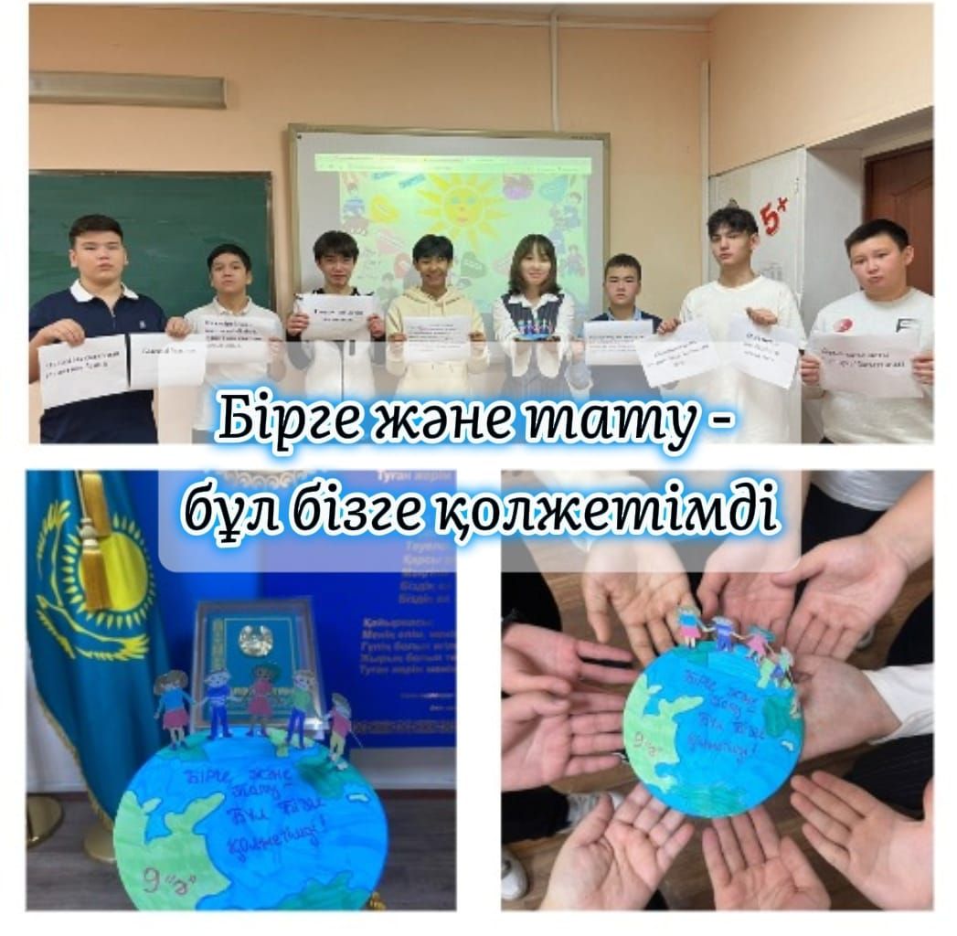 Мектебімізде өтіп жатқан "Толеранттылық" апталығында 9Ә сынып оқушыларымен "Бірге және тату-бұл бізге қол жетімді" тақырыбында қолөнерлерін көрсетті. Және "Төзім…