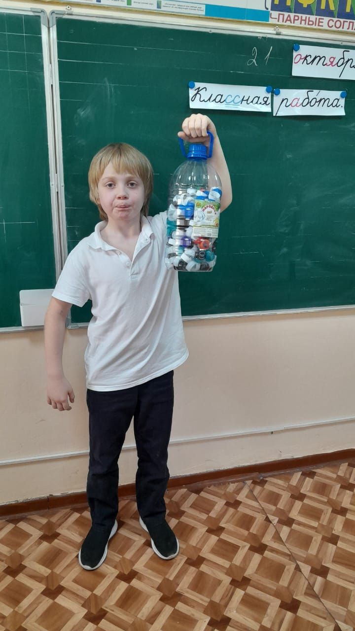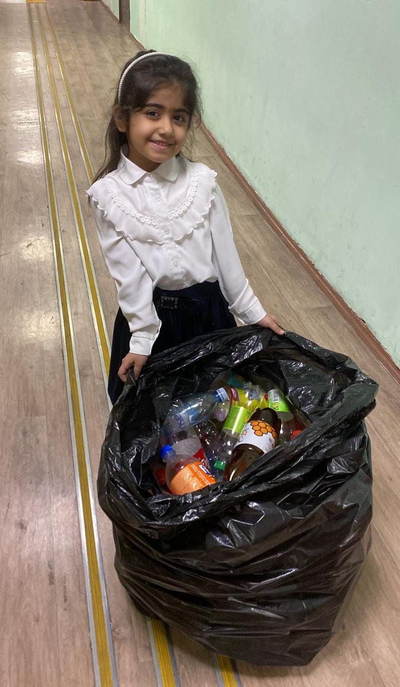 Ученица 1 "В" класса Алиева Фатманур приняла участие в сборе пластиковых бутылок в рамках экологического конкурса "ЭкоГерой". Ребенок рад, что может сделать чт…