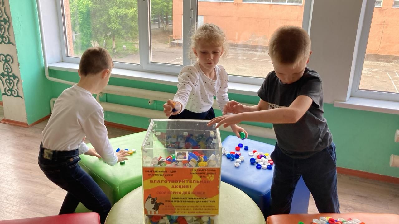 Учащиеся 2 Г и 4 Е классов продолжают благотворительную акцию сбора корма для кошек.