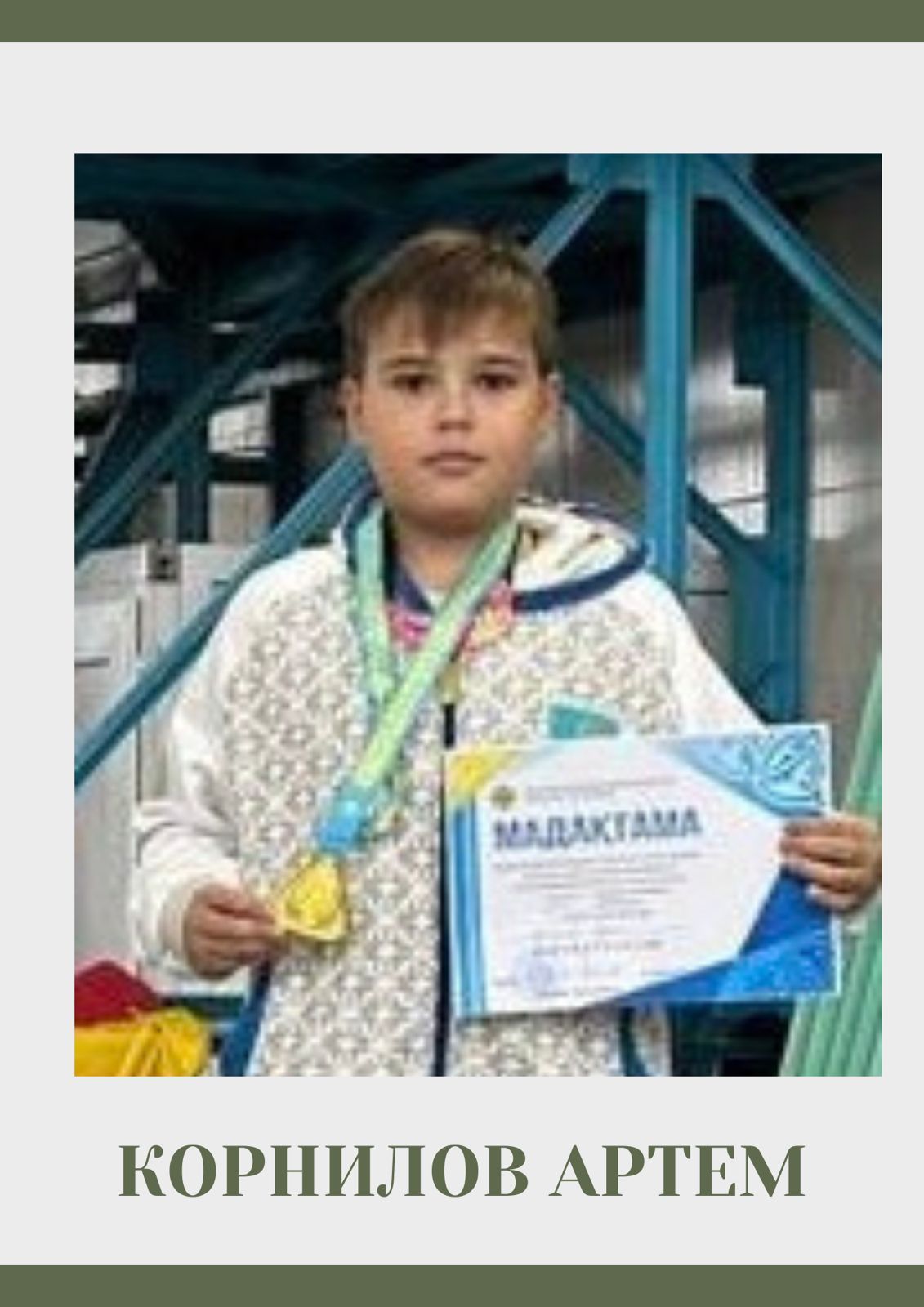 Ученик 5 “А” Корнилов Артем занял третье место по плаванию среди пловцов на открытом чемпионате города Караганды.