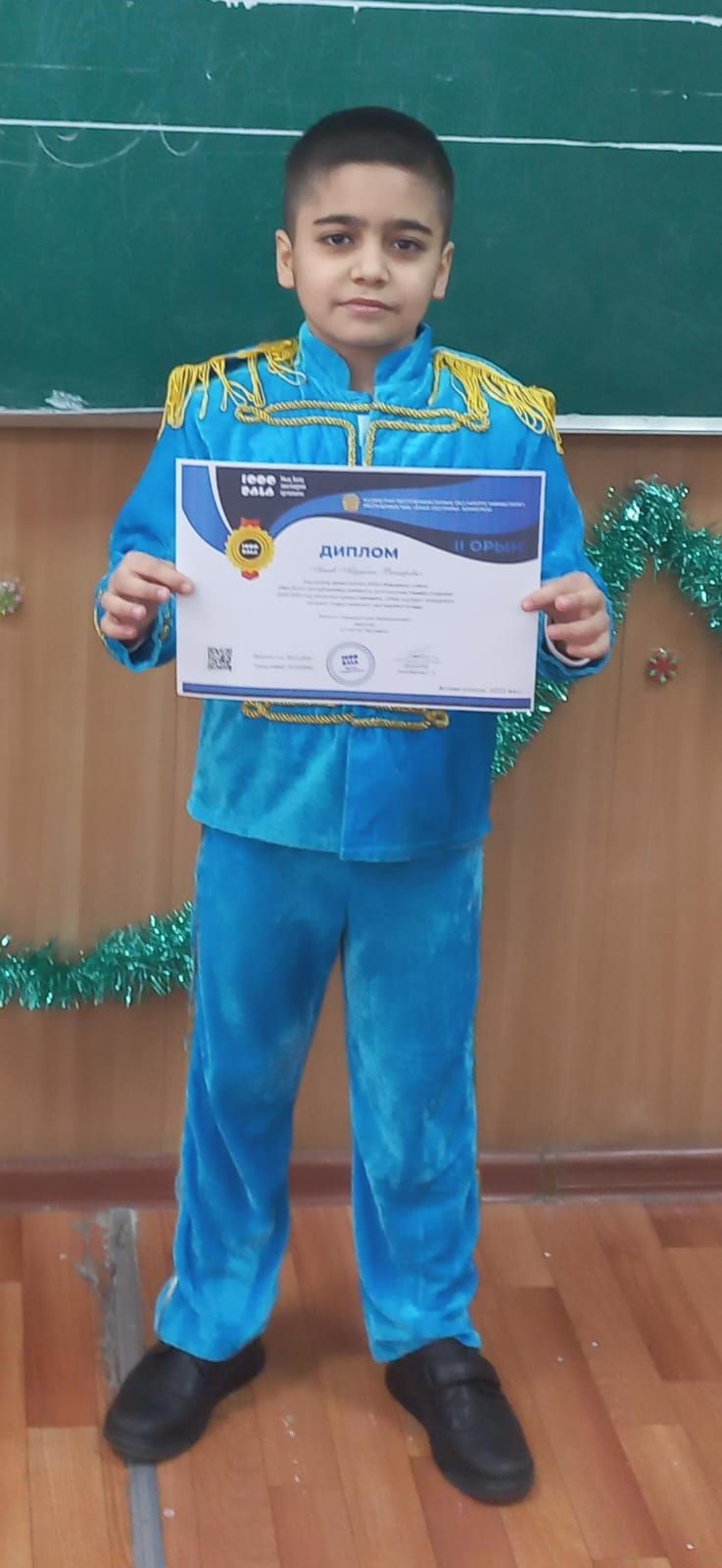 Алив Абдуллах ученик 4 "Д" класса принял участие в Республиканском конкурсе чтения стихотворений Абая "Мың бала" и занял 2 место!