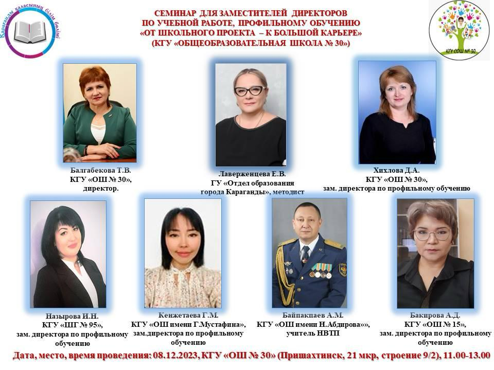 №30 жалпы білім беретін мектепте , "Мектеп жобасынан үлкен мансапқа"директорлардың оқу,бейіндік оқыту бойынша орынбасарлары үшін семинар өтті
