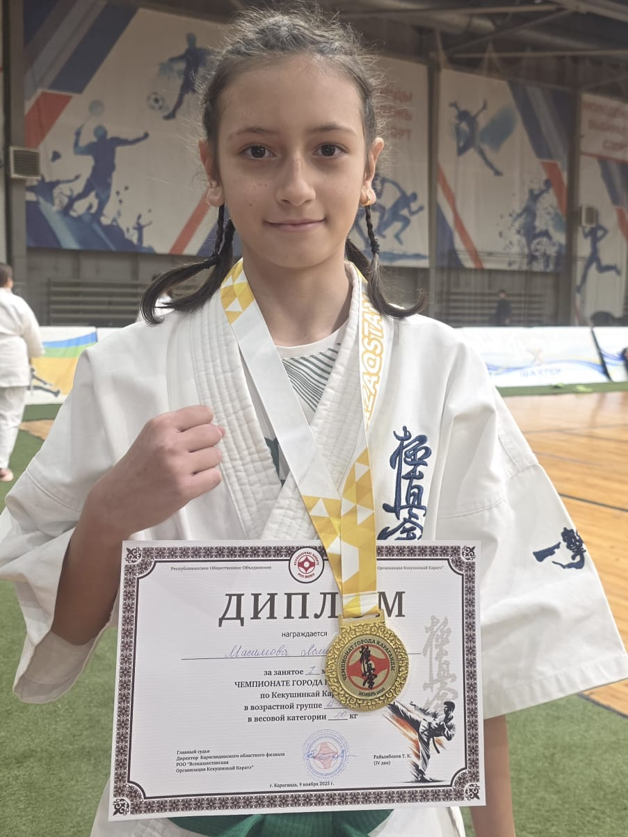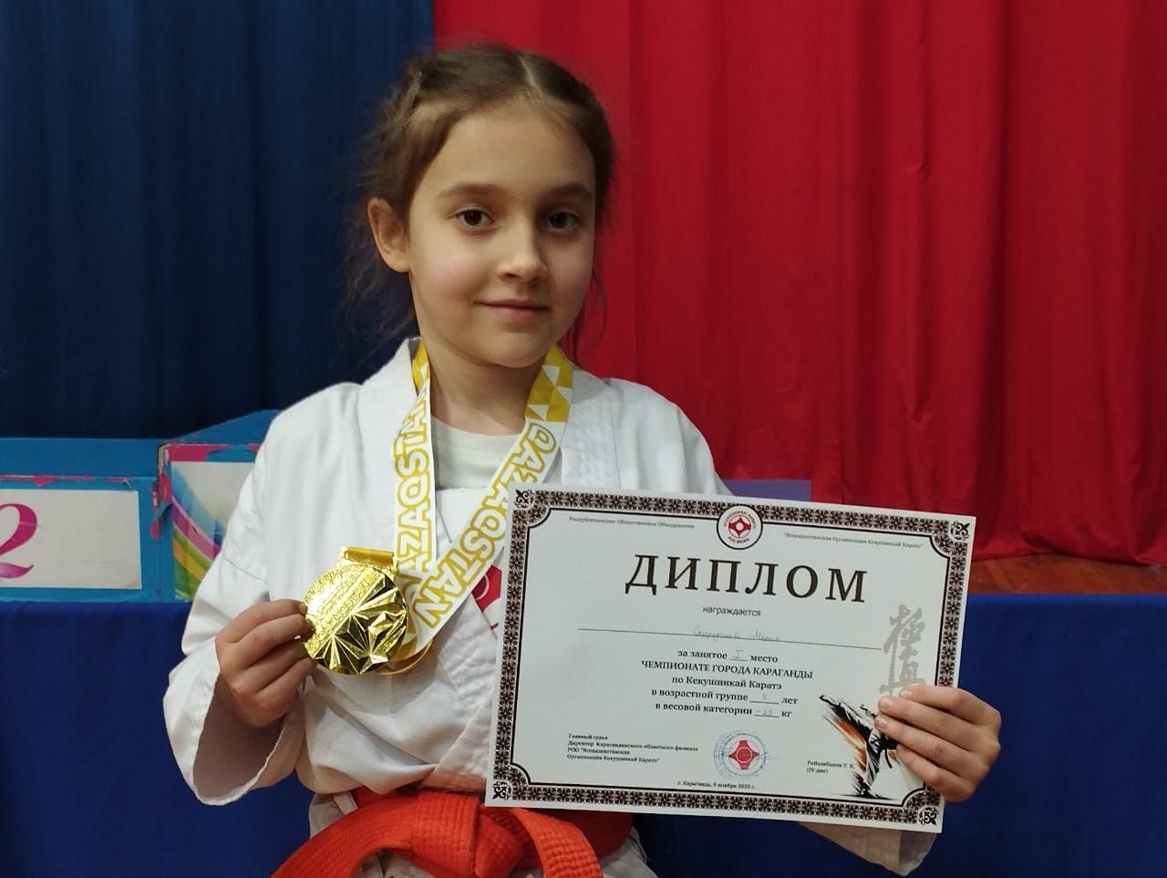 Шаповалова Елизавета, 6 «А» сынып оқушысы, Г. Мустафин атындағы орта мектеп. Қарағанды қаласының чемпионатында киокушинкай каратэден 12-13 жас аралығындағы жас санаты, 50+ салмақ санат…