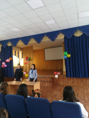 21 февраля школе была организована встреча учащихся 8- 9-б классов, с УИП ГЮП ОПМС Михайловского ОП капитаном полиции Серикбаевой Б и старшим лейтенантом полиции Аманбаевой А…