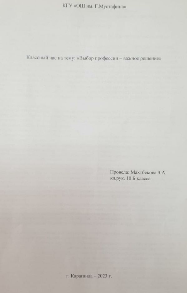 30.01.2023 жылы 8 сынып оқушылары "Барлық мамандық қажет, барлық мамандық маңызды" тақырыбында сынып сағатын өткізді. Болашақ мамандықтары туралы ой қозғады.