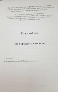 30.01.2023 ж. 3 "Е" сыныбында "Барлық мамандық қажет, барлық мамандық маңызды" тақырыбында сынып сағаты өткізілді.