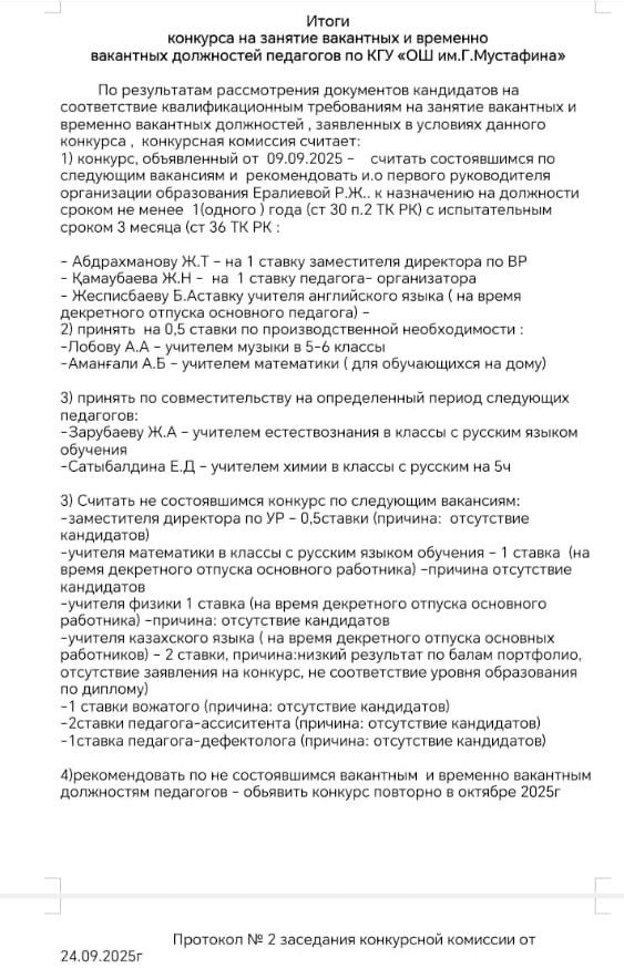 Габиден Мұстафин атындағы орта мектептің әкімшілігі мен педагогикалық ұжымы Республикалық «Мектепке жол» акциясына белсенді қатысқаны үшін Юлия Васильевна Виноградоваға және «Наш д…