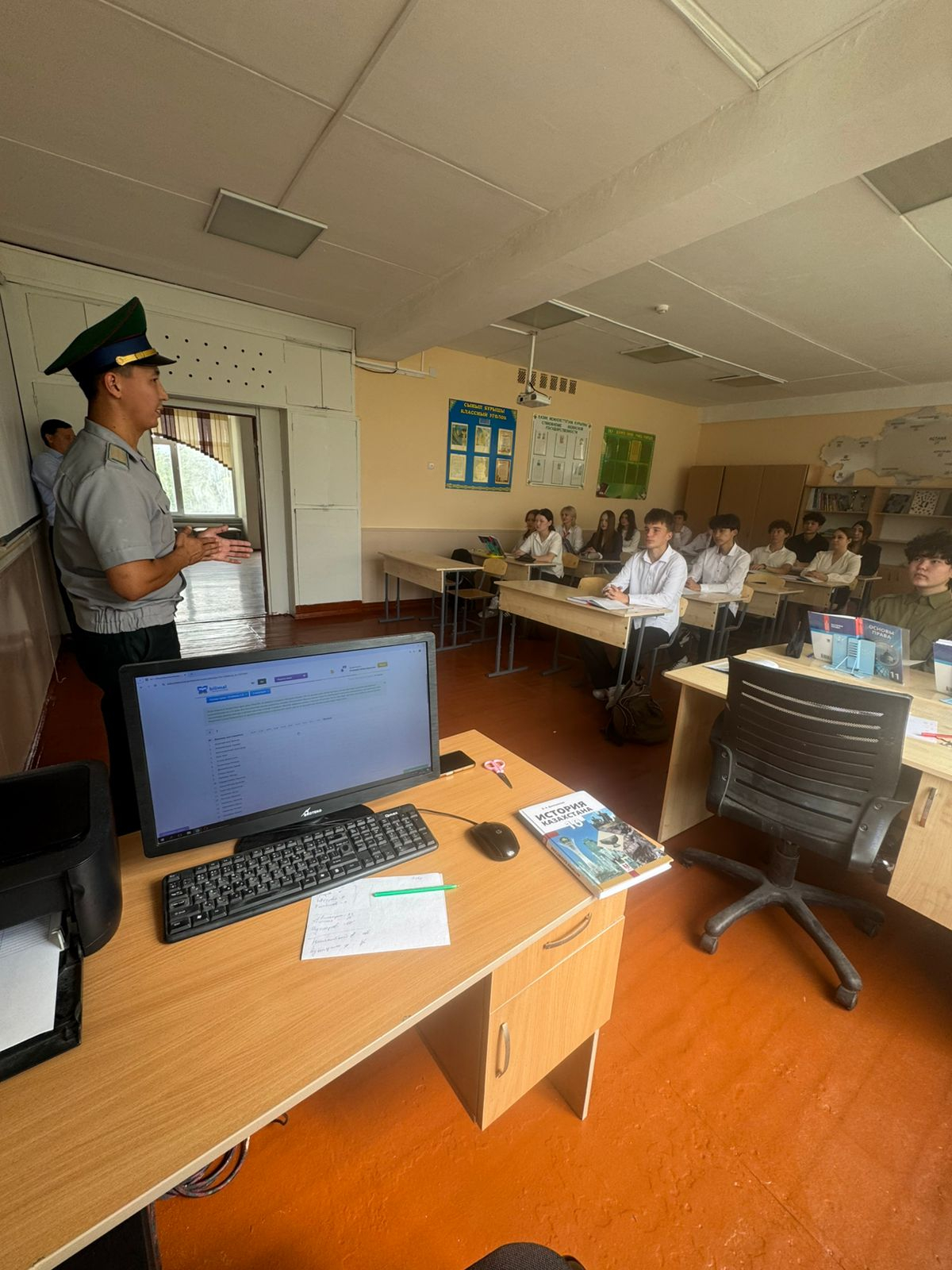8 сентября 2025 года в нашей школе состоялась профориентационная встреча с представителем Академии пограничной службы КНБ РК — лейтенантом Джангельдиновым Ерсултаном Талгатовичем, офицером отд…