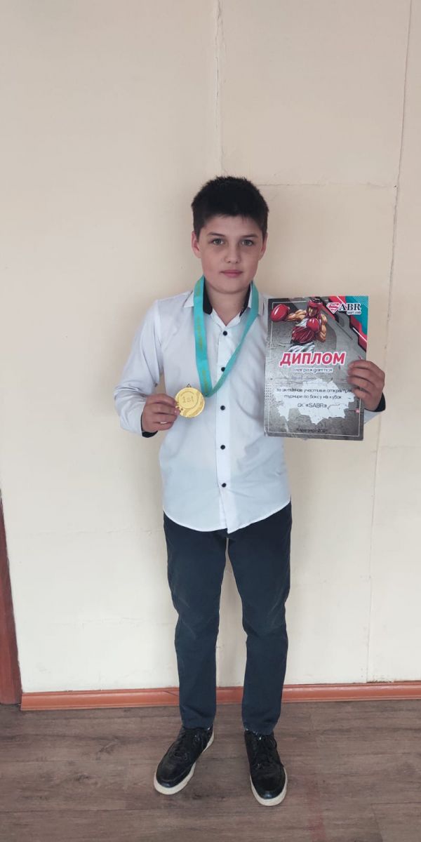 Дрегер Виктор ученик 6"А" класса занял первое место в весовой категории 44 кг в Республиканском турнире по боксу среди юниоров на кубок спортивного клуба «Sabr».