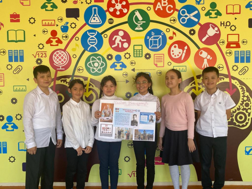 Қазақ батырлары Мәншүк Мәметова, Хиуаз Доспанова, Талғат Бигелдиновтің 100 жылдық мерейтойына арналған "Мәңгілік ел талаптары" қалалық шығармашылық байқауына 5 "Г" сынып оқушысы…