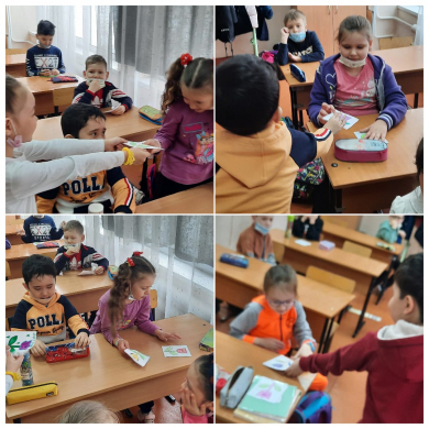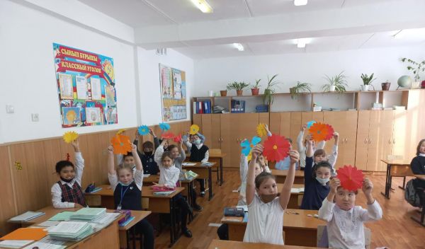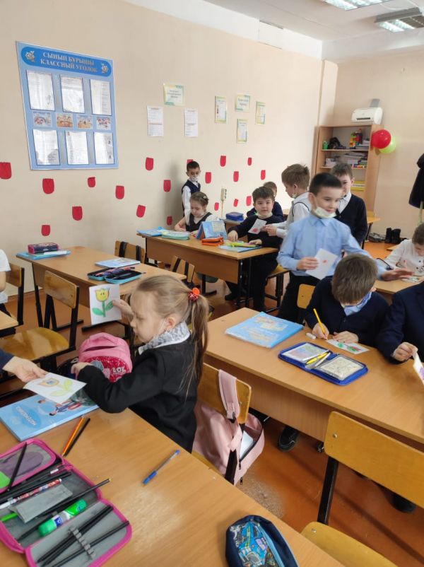 Ученики 1 "Д" класса приняли участие в акции "Сыныбыңа гүл сыйла!". Тюльпан - это символ Наурыза. Ребята подарили друг другу эти прекрасные цветы с пожеланиями и поздравили с пра…