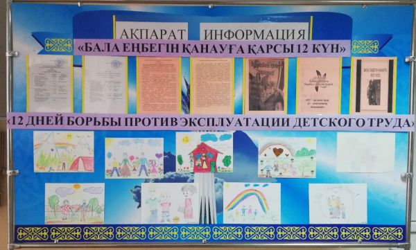 «Бала еңбегін қанауға қарсы 12 күн» Ұлттық Ақпараттық Науқаны аясында мектепте ақпарттық бұрыш ұ…