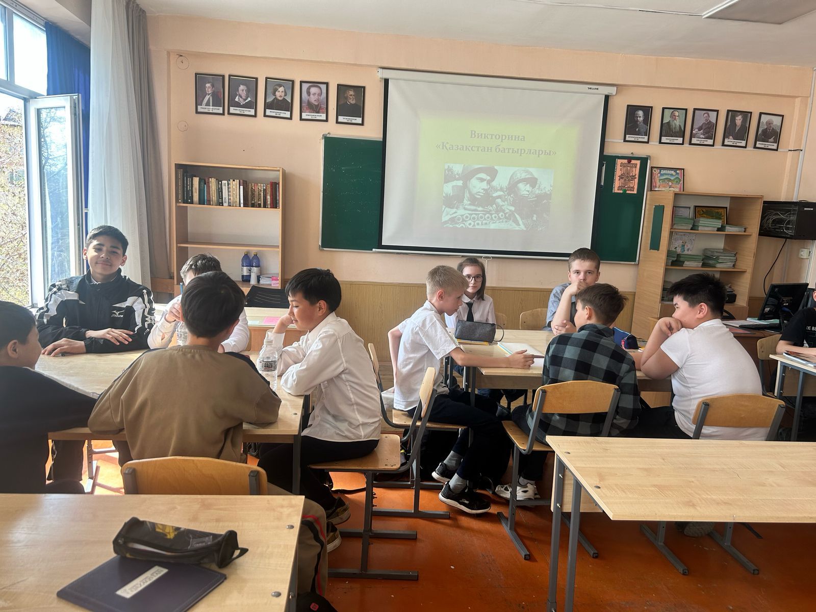 В 5 "Е" классе было проведено мероприятие на тему "Қазақстан батырлары", посвящённое героям Великой Отечественной войны.