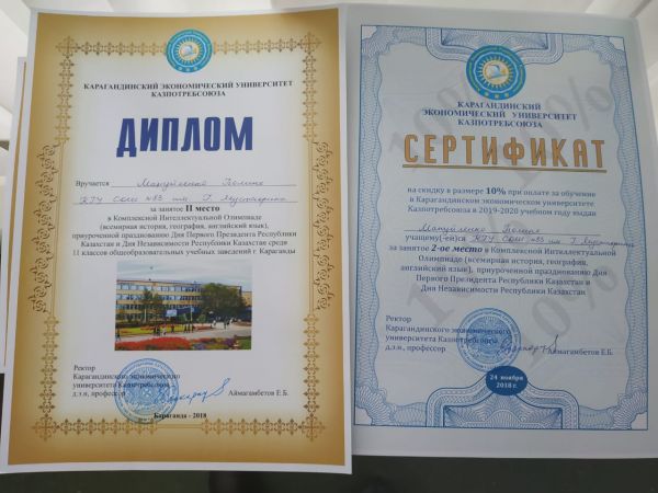 24.11.2018ж. Кооперативтік Университетінде ҚЭУҚ (ағылшын тілі, дүние жүзі тарихынан, географиядан)олимпиада өтті. Біздің оқушы Курманалин Алишер 1 орын алды және Мануйленко Полина 2 орынды алды. Ола…