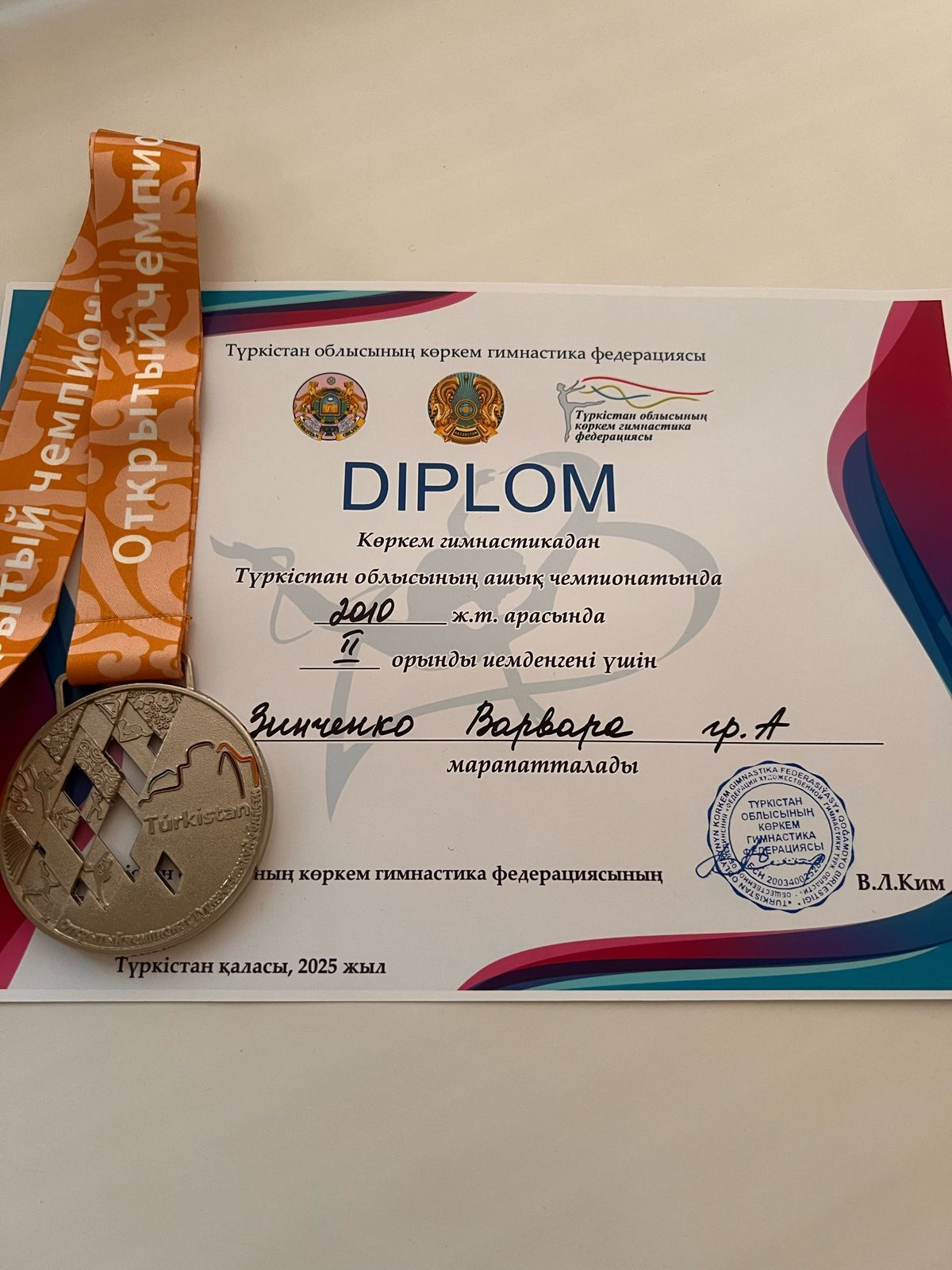 Поздравляем! Ученица КГУ «ОШ. им. Г. Мустафина» Зинченко Варвара, приняла участие в открытом чемпионате Туркестанской области по художественной гимнастике и стала серебряным призером чемпионата! Администрация школы, учителя, школьники поздравляют и