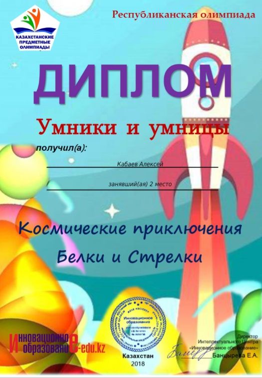 "Инновациялық білім" зияткерлік орталық өткізіп отырған олимпиадалар сериясына 2 "Б" сынып оқушылары қатысуды жалғастыруда . Кабаев Алексейді, Кузьмичёва Кристинаны,…