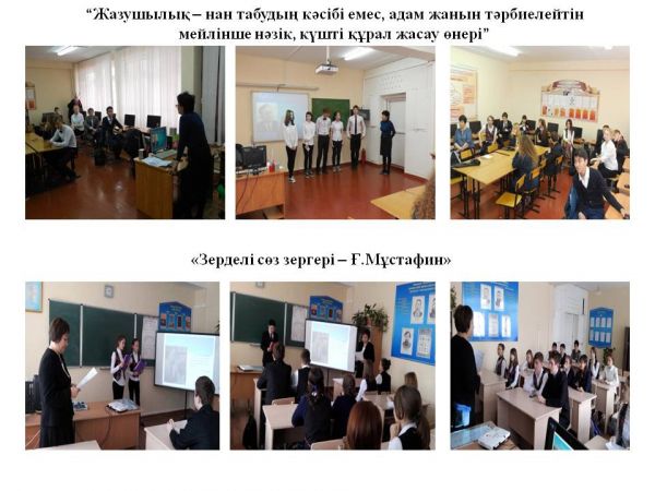 2016 жылдың 07 мен 12 қарашасы күндері аралығында мектебімізде ұлы классик жазушымыз, табиғаты өзгеше талант иесі, дархан даламыздың дүбірлі дүлдүлі Ғабиден Мұстафиннің туғанына 114 жыл толуына байл…