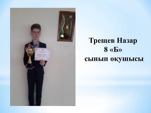Конькимен мәнерлеп сырғанаудан Қазақстан Республикасының кубогінде ҮСШ санаты бойынша 2 орын алған 8 «Б» сынып оқушысы Трещев Назарды құттықтайм…