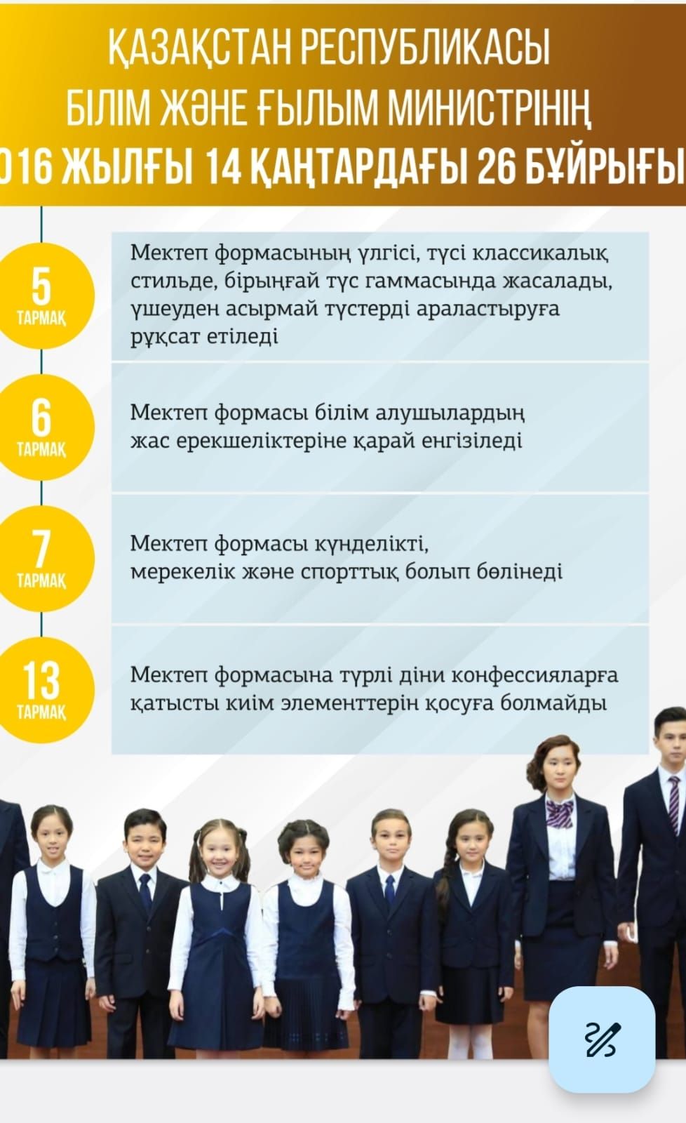 Мектеп формасына қойылатын талаптар