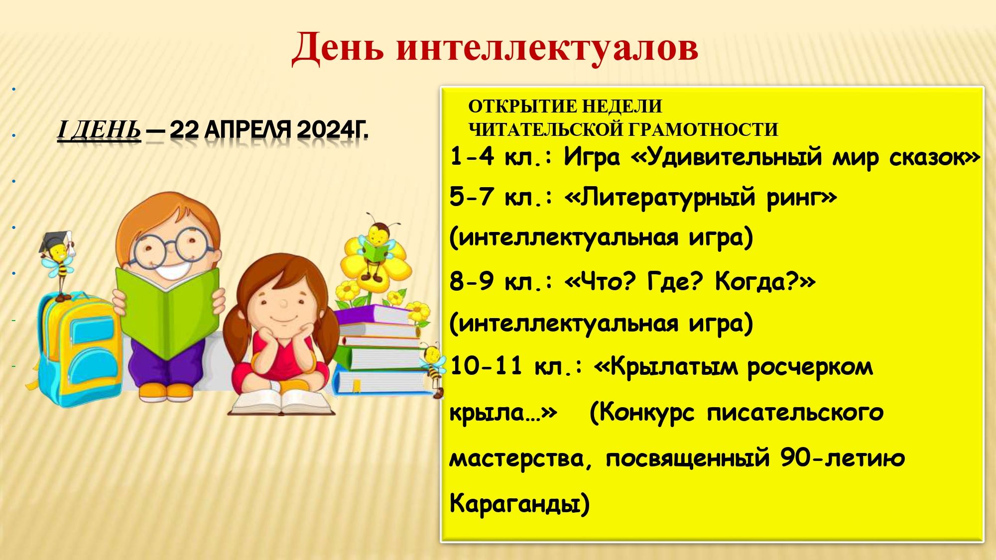 С 22 апреля по 26 апреля в нашей школе проходит Неделя читательской грамотности «XXI век - век грамотного поколения!». Приглашаем всех ребят к активному участию в мероприятиях!