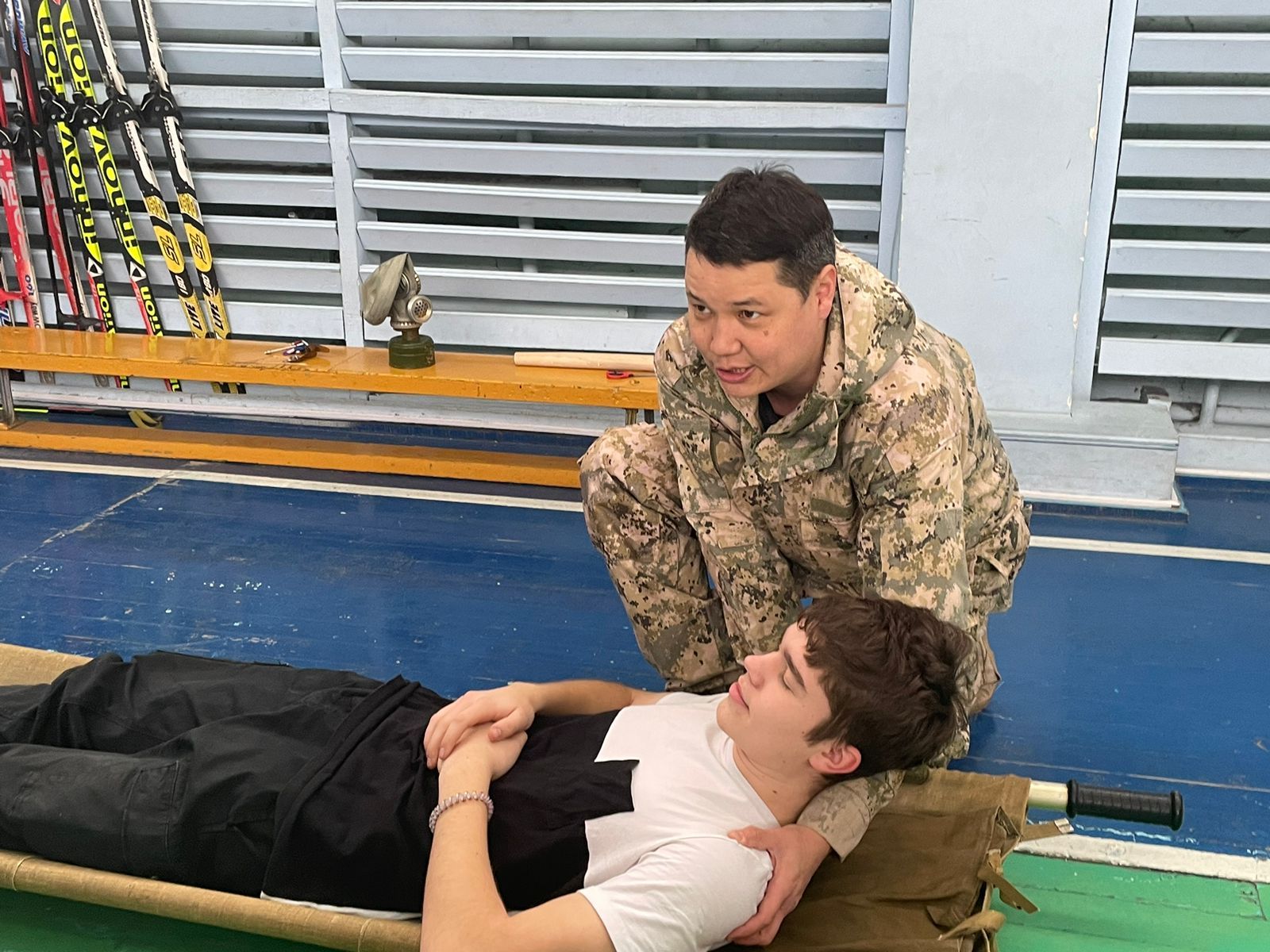 27 февраля 2024 года В КГУ «ОШ им. Г. Мустафина» в рамках Всемирного дня гражданской обороны РК с учащимися 10«Б», 10«В» класса было проведено практическое заняти…