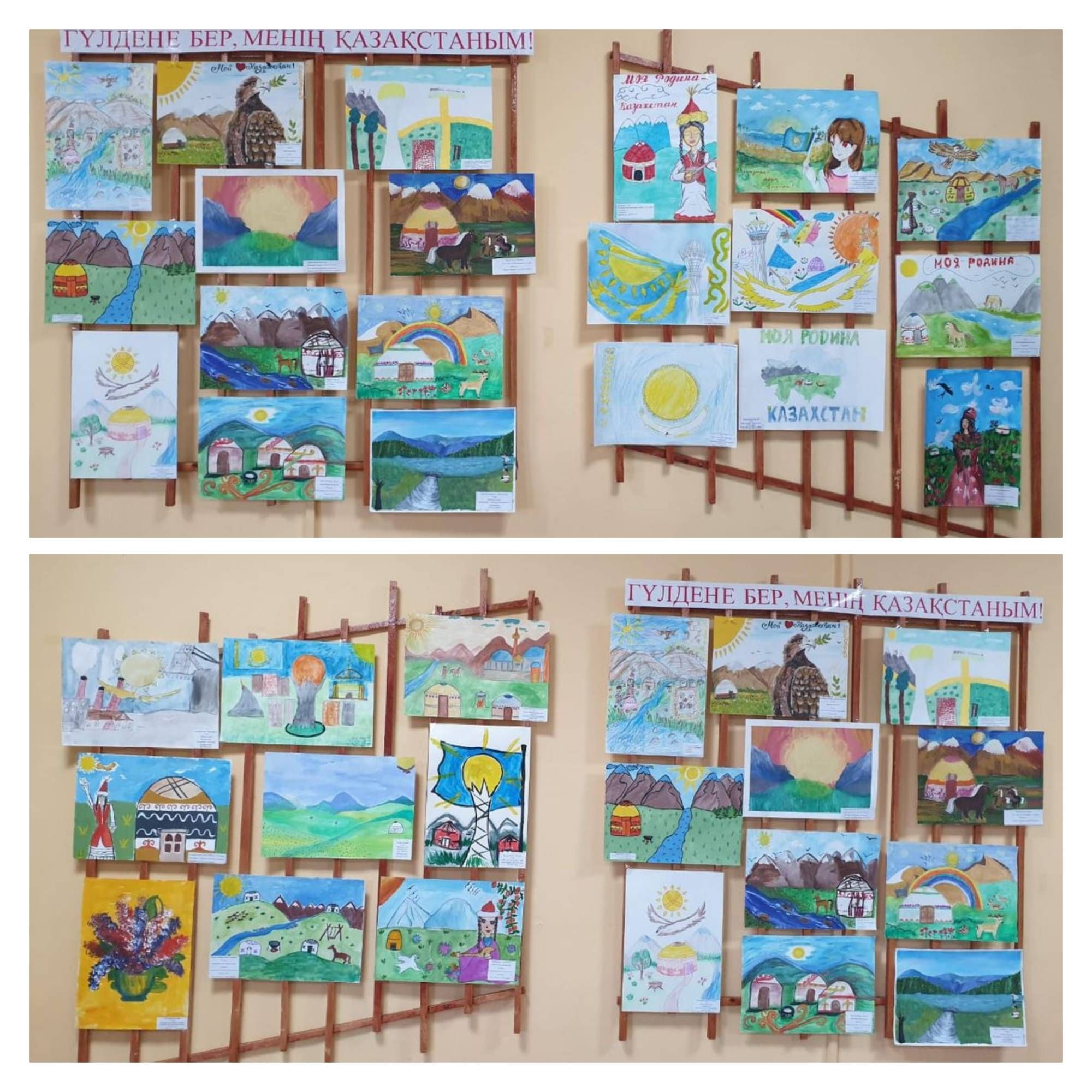 В рамках празднования Дня Независимости Республики Казахстан среди учащихся организовали выставку-конкурс рисунков « Гүлдене бер, менің Қазақстаным».