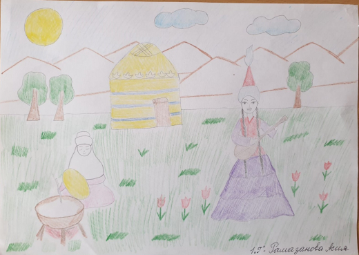 14.03. учащиеся 1 "Г" класса приняли активное участие в конкурсе рисунков на тему: «Көңілді көктем»