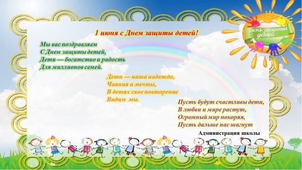 1.06. в ZOOMe директор школы Горбунова Л.В. поздравила с Международным Днём защиты детей!