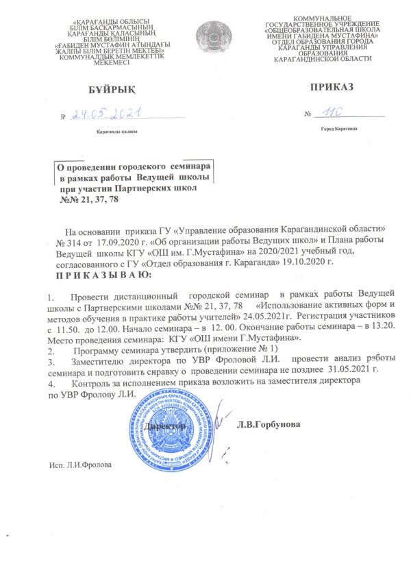24 мая 2021 года в КГУ "ОШ имени Габидена Мустафина" в онлайн-формате посредством платформы Zoom прошел заключительный семинар в ра…