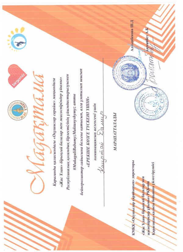 "Мұқағали - бабамыз Мақтанышымыз"атты бейнероликтер сайысына белсене қатысқаны үшін мадақтамамен марапатталды