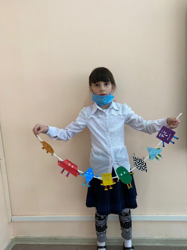 Первоклассники представили гирлянды геометрических человечков и 3D -композицию