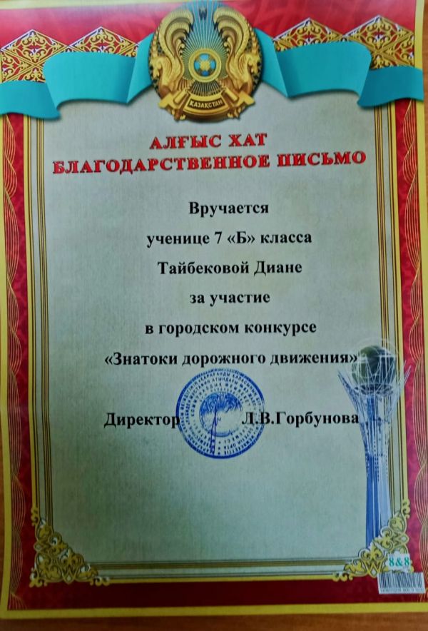 Учащиеся 7"Б"класса КГУ СОШ 83 им.Г.Мустафина приняли участие в городском конкурсе "ЗНАТОКИ ДОРОЖНОГО ДВИЖЕНИЯ". Участники:Ис…