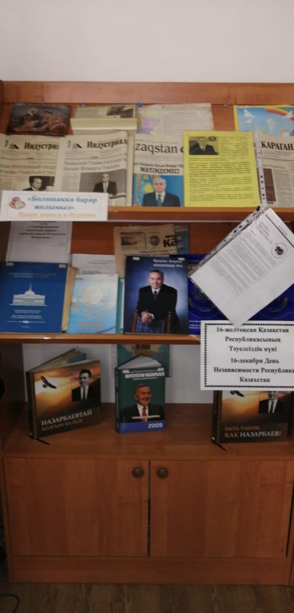 Библиотека КГУ СОШ № 83 им.Г.Мустафина организовала книжную выставку «Болашаққа барар жолымыз» - «Наша дорога в будущее». На выставке собран материал, который рассказыв…