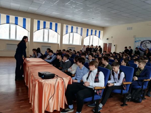 19.02.2020 г. перед учащимися школы выступила инспектор ГЮП по делам несовершеннолетних Кулейменова А.Н. Тема выступления «Про…