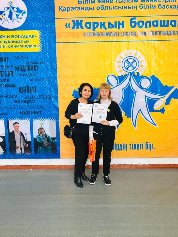 Поздравляем!(8 В) класс Прядун Милана заняла 3 место в конкусре "Жарқын болашақ"