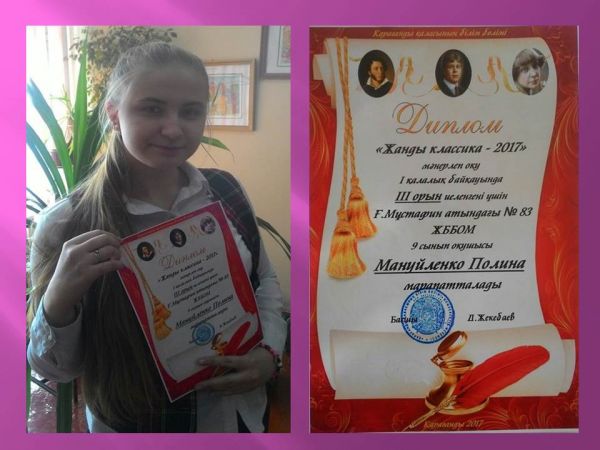 III орын иеленгені үшін Мануйленко Полинаны құттықтаймыз.