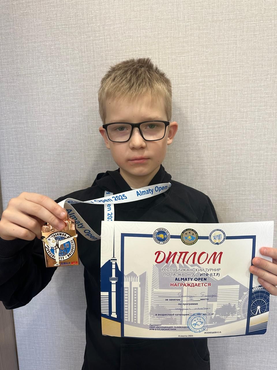Полонский Тимофей 5 А класс, занял 3 место в городе Алматы в республиканском турнире по Таэквон-до ИТФ(I.T.F) Соревнования проходили 25-26 января 2025 года.